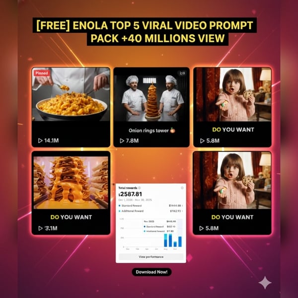 ⭐⭐⭐ [FREE] ENOLA TOP 5 VIRAL VIDEO PROMPT PACK +40 MILLIONS VIEW