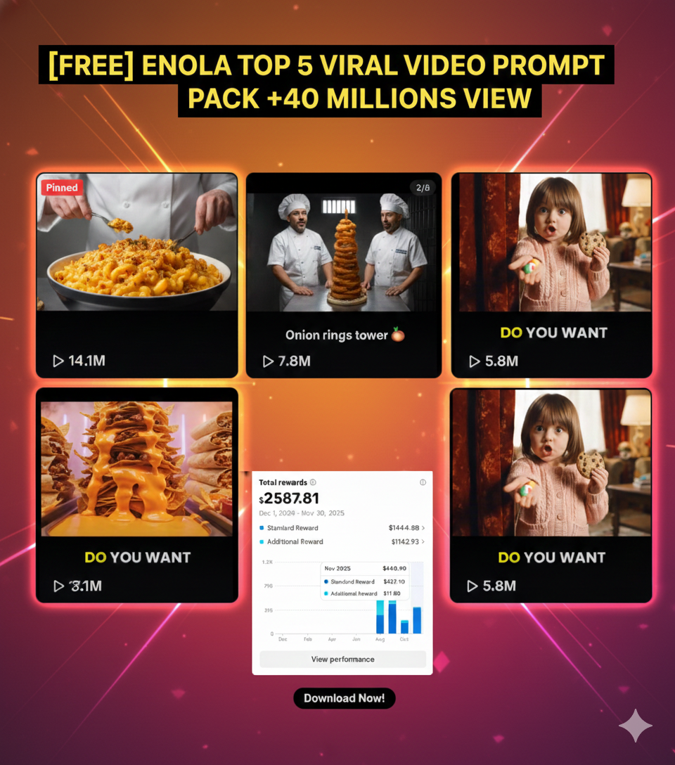 ⭐⭐⭐ [FREE] ENOLA TOP 5 VIRAL VIDEO PROMPT PACK +40 MILLIONS VIEW